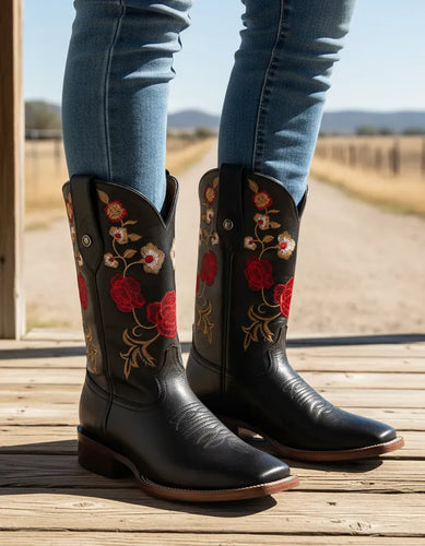 D1011 - Bota oval bordada venado negro