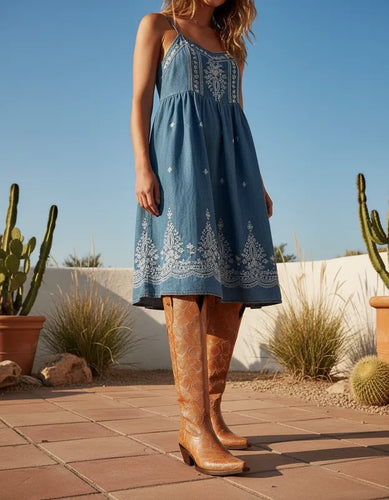 D3022 - Bota larga puntal grabado anaconda bronce/azul/naranja