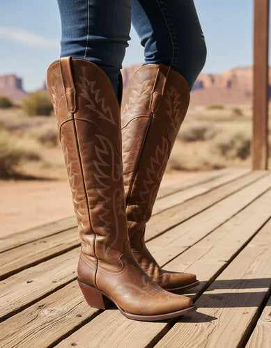 U1007 - Botín charro de cuero nubuck moka