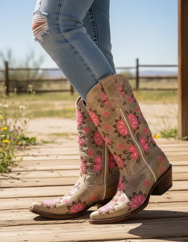 D2031 - Bota puntal de flores desierto ostra fucsia