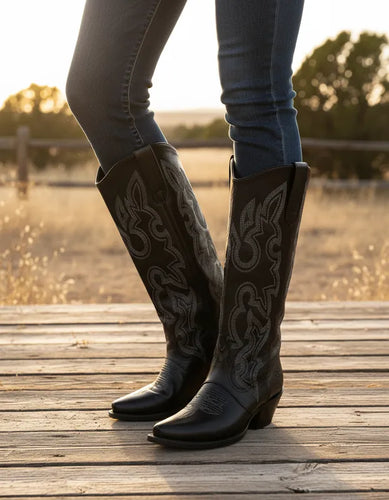 U1004 - Botín charro de cuero atanado negro