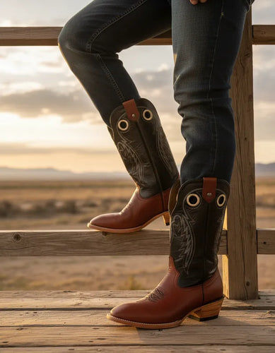 ELH1009 - Bota rodeo antifaz de hule crazy oro/cajeta