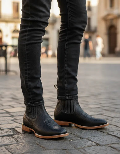 C1002 - Cinto vaquero para hombre con herrajes negro